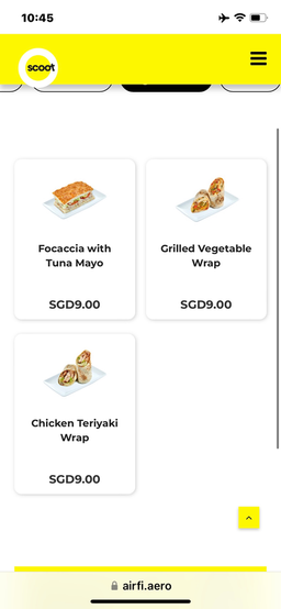 Scoot's Food and Beverage menu & prices (Sept 2022):